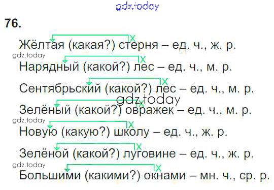 Ответы к Часть 1. Решение к упражнениям 76 Учебнику по Русскому языку для 4 класса Рамзаева Дрофа 2014