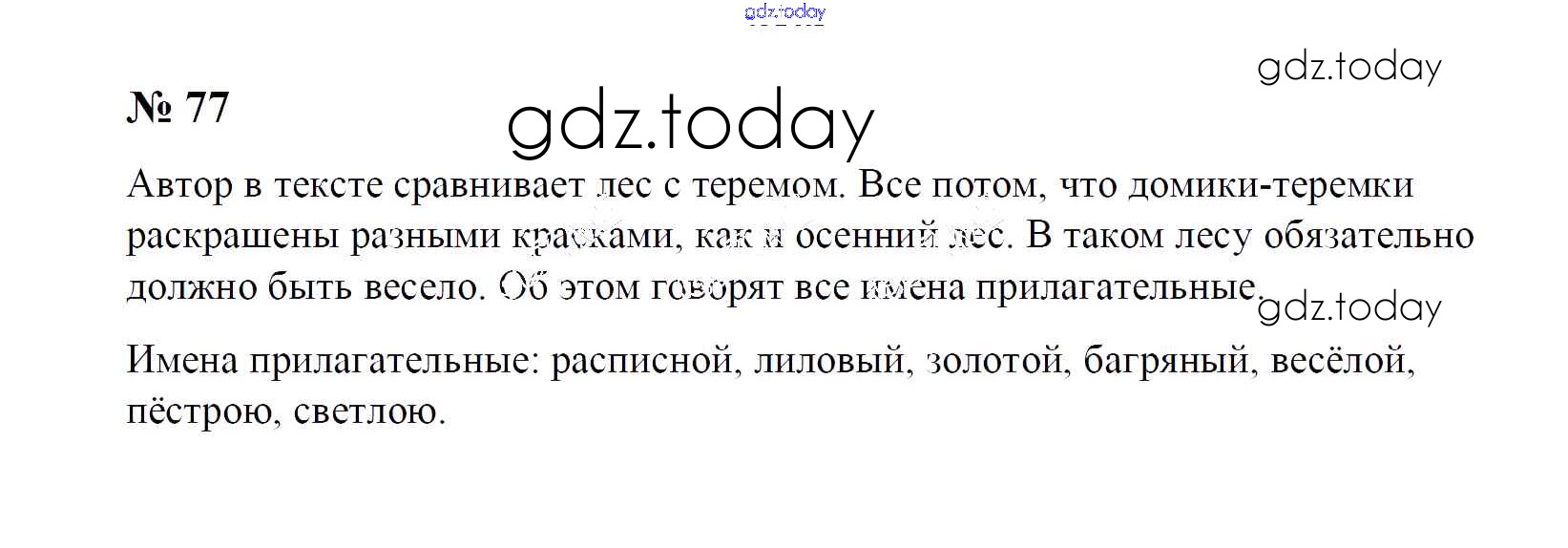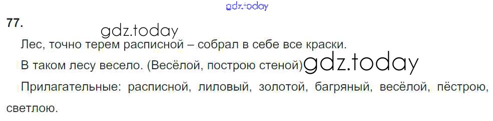 Ответы к Часть 1. Решение к упражнениям 77 Учебнику по Русскому языку для 4 класса Рамзаева Дрофа 2014