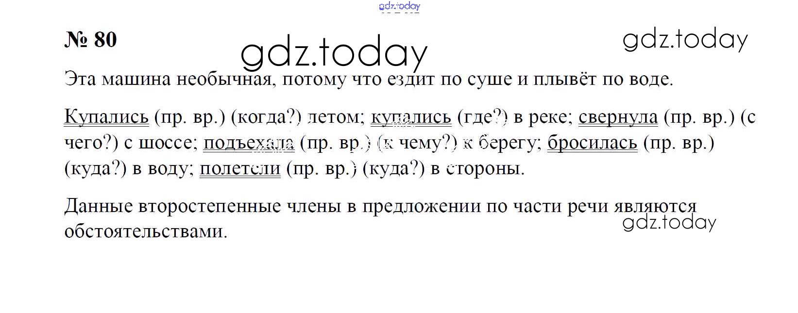 На страницах сайта gdz.today вы найдете учебный и вспомогательный материал, направленный на улучшения знаний школьной программы. ГДЗ - онлайн мир знаний Часть 1. Решение к упражнениям 80 Учебнику по Русскому языку для 4 класса Рамзаева Дрофа 2014