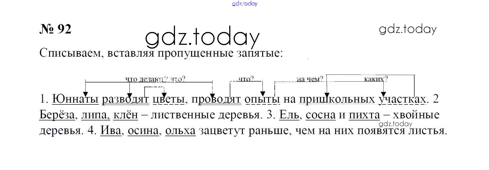 На страницах сайта gdz.today вы найдете учебный и вспомогательный материал, направленный на улучшения знаний школьной программы. ГДЗ - онлайн мир знаний Часть 1. Решение к упражнениям 92 Учебнику по Русскому языку для 4 класса Рамзаева Дрофа 2014