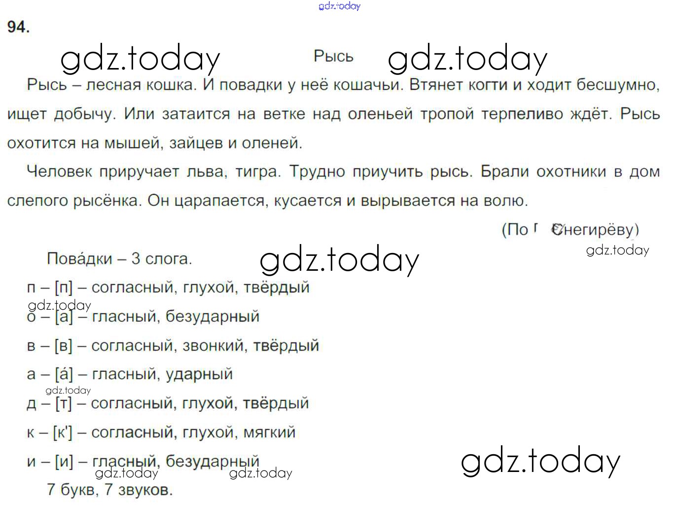 Ответы к Часть 1. Решение к упражнениям 94 Учебнику по Русскому языку для 4 класса Рамзаева Дрофа 2014