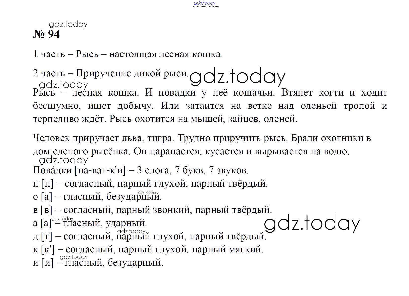 На страницах сайта gdz.today вы найдете учебный и вспомогательный материал, направленный на улучшения знаний школьной программы. ГДЗ - онлайн мир знаний Часть 1. Решение к упражнениям 94 Учебнику по Русскому языку для 4 класса Рамзаева Дрофа 2014