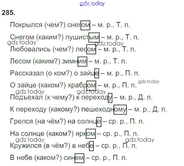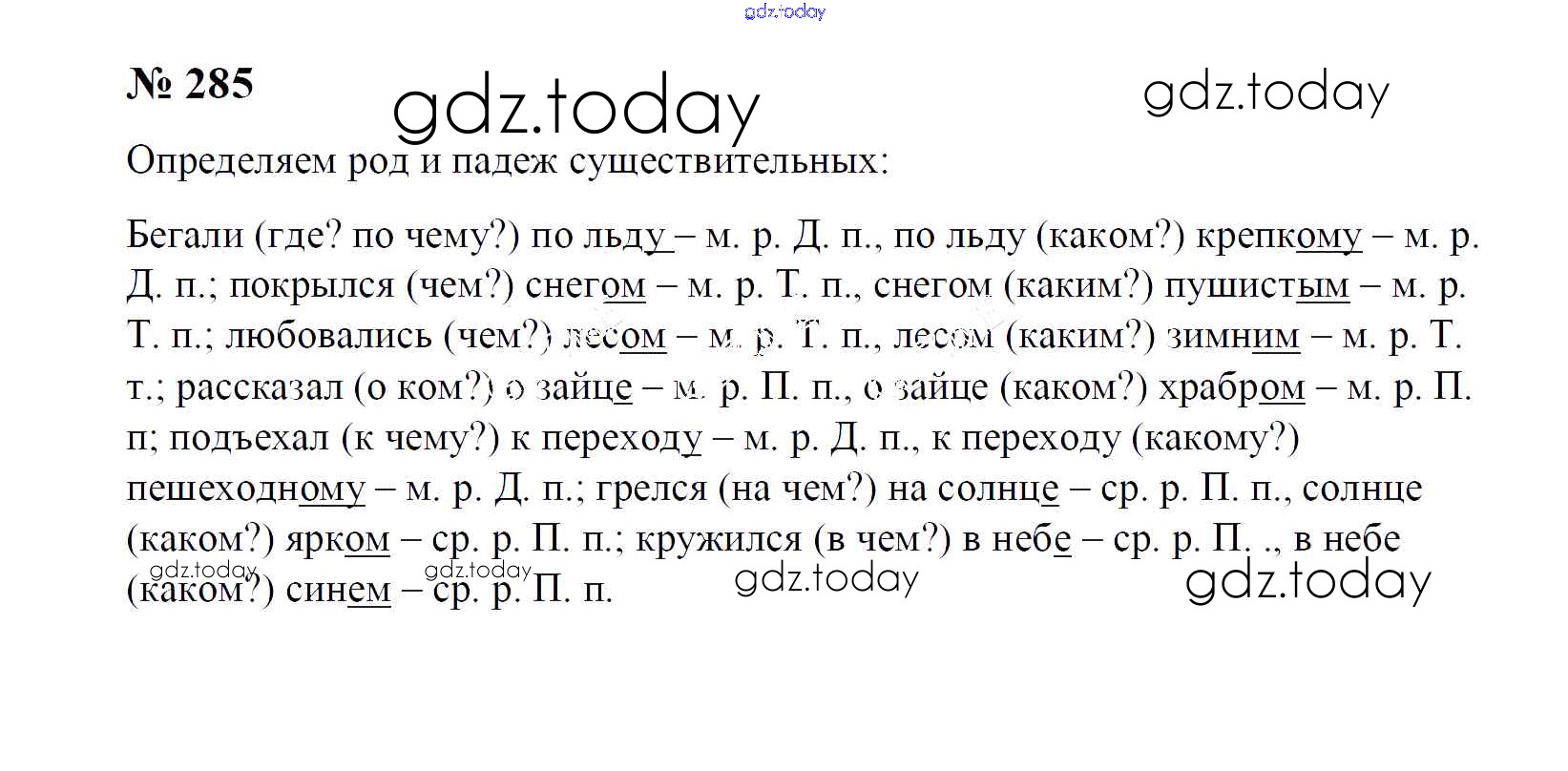 На страницах сайта gdz.today вы найдете учебный и вспомогательный материал, направленный на улучшения знаний школьной программы. ГДЗ - онлайн мир знаний Часть 2. Решение к упражнениям 285 Учебнику по Русскому языку для 4 класса Рамзаева Дрофа 2014