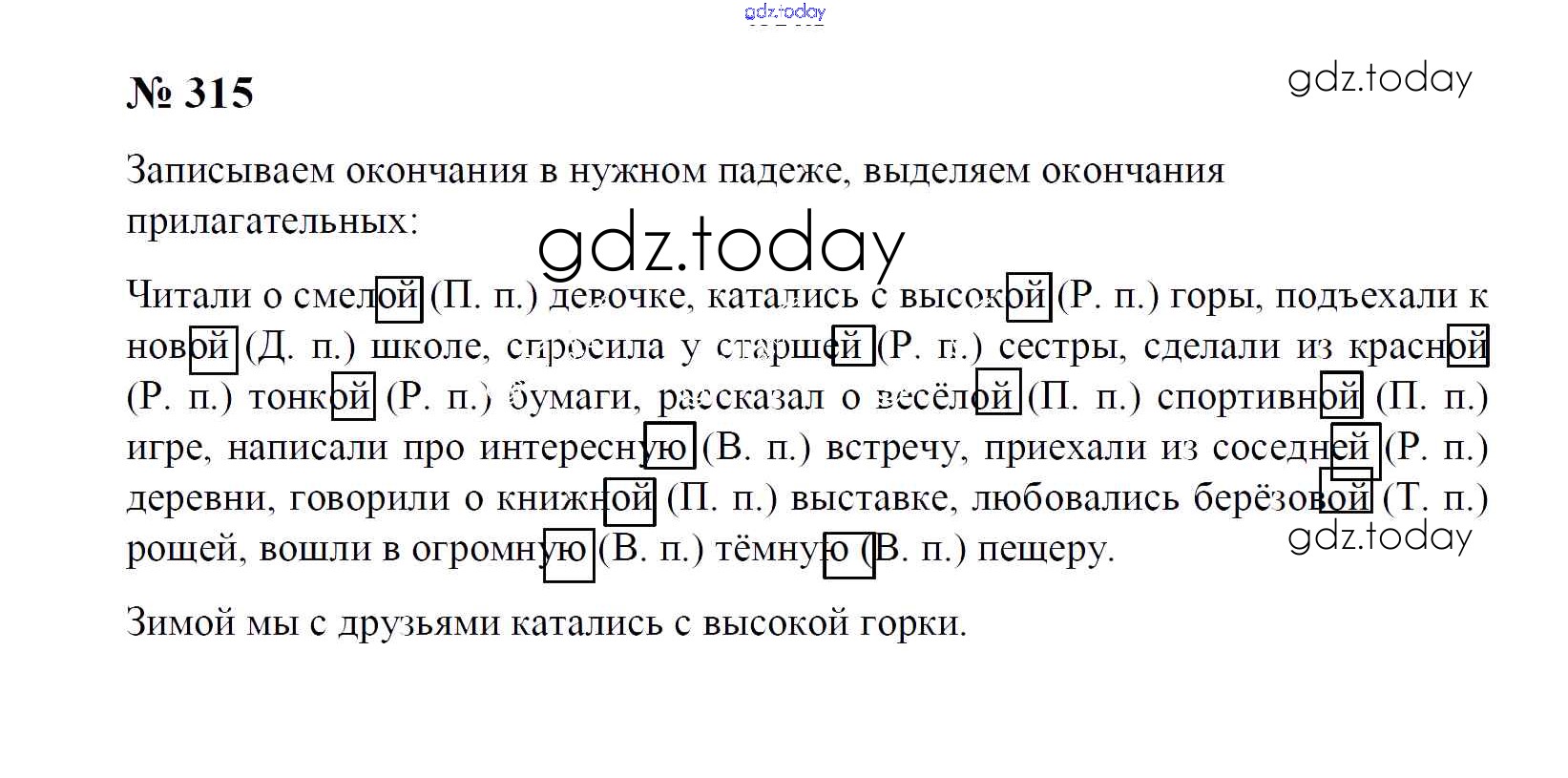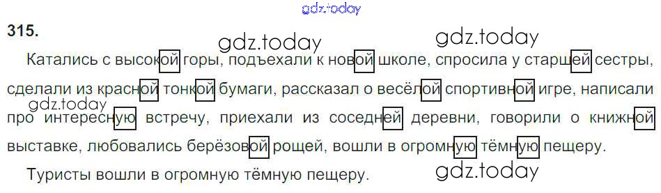 На страницах сайта gdz.today вы найдете учебный и вспомогательный материал, направленный на улучшения знаний школьной программы. ГДЗ - онлайн мир знаний Часть 2. Решение к упражнениям 315 Учебнику по Русскому языку для 4 класса Рамзаева Дрофа 2014