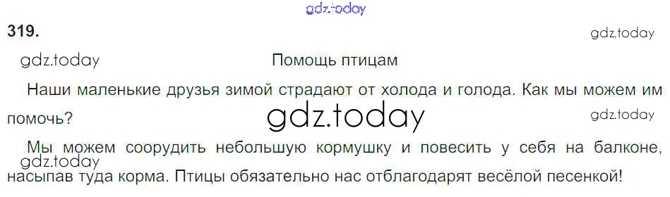 На страницах сайта gdz.today вы найдете учебный и вспомогательный материал, направленный на улучшения знаний школьной программы. ГДЗ - онлайн мир знаний Часть 2. Решение к упражнениям 319 Учебнику по Русскому языку для 4 класса Рамзаева Дрофа 2014