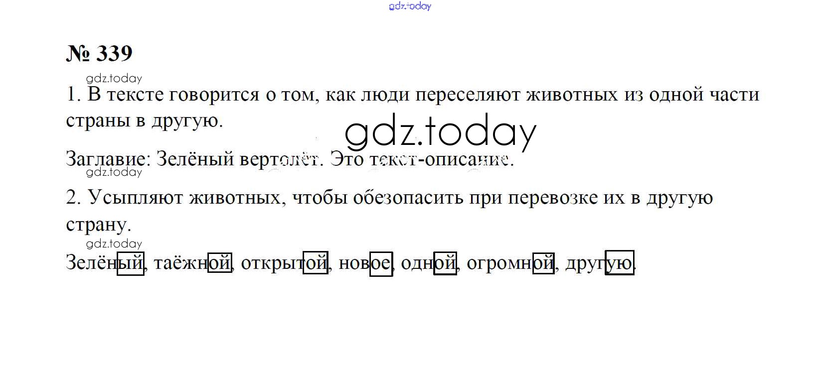 Ответы к Часть 2. Решение к упражнениям 339 Учебнику по Русскому языку для 4 класса Рамзаева Дрофа 2014