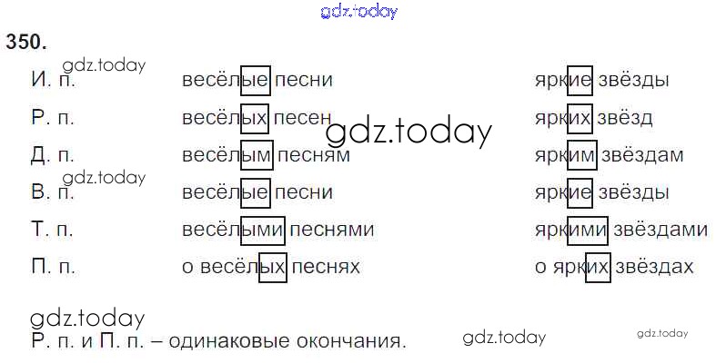 Ответы к Часть 2. Решение к упражнениям 350 Учебнику по Русскому языку для 4 класса Рамзаева Дрофа 2014