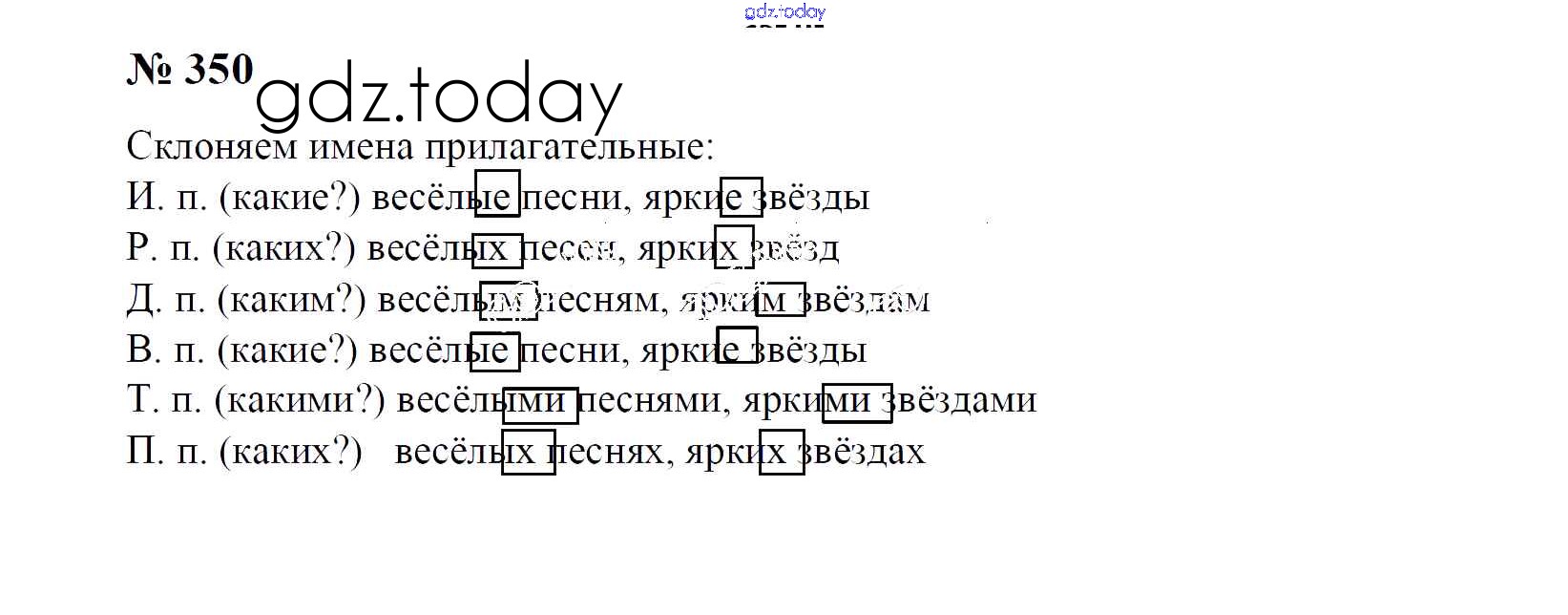 На страницах сайта gdz.today вы найдете учебный и вспомогательный материал, направленный на улучшения знаний школьной программы. ГДЗ - онлайн мир знаний Часть 2. Решение к упражнениям 350 Учебнику по Русскому языку для 4 класса Рамзаева Дрофа 2014