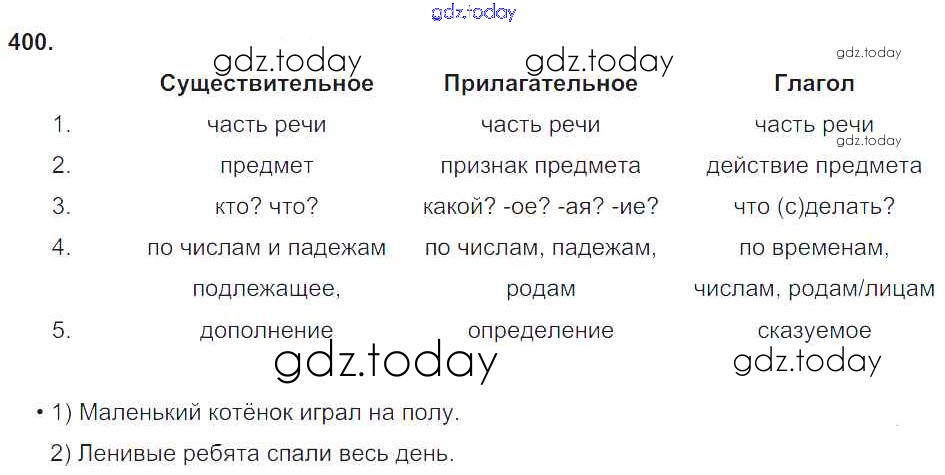 На страницах сайта gdz.today вы найдете учебный и вспомогательный материал, направленный на улучшения знаний школьной программы. ГДЗ - онлайн мир знаний Часть 2. Решение к упражнениям 400 Учебнику по Русскому языку для 4 класса Рамзаева Дрофа 2014