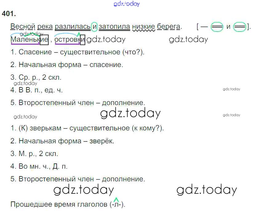 Ответы к Часть 2. Решение к упражнениям 401 Учебнику по Русскому языку для 4 класса Рамзаева Дрофа 2014
