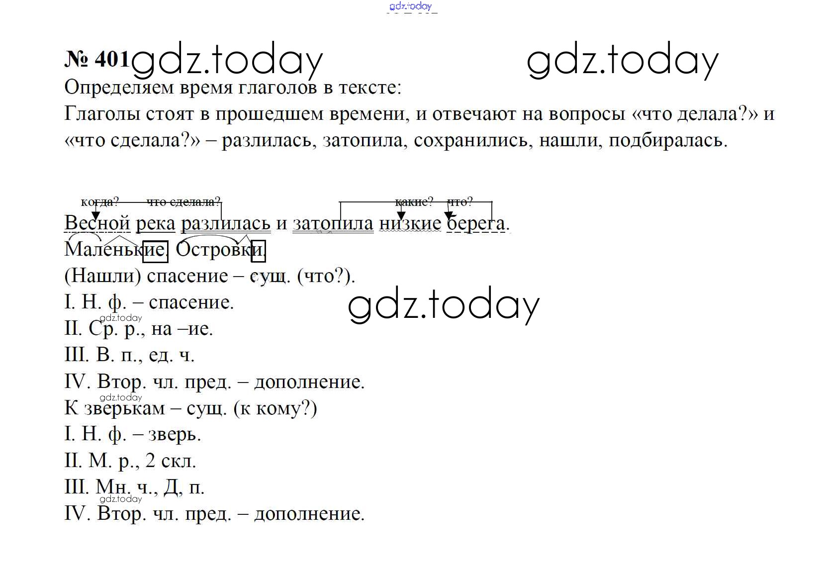 На страницах сайта gdz.today вы найдете учебный и вспомогательный материал, направленный на улучшения знаний школьной программы. ГДЗ - онлайн мир знаний Часть 2. Решение к упражнениям 401 Учебнику по Русскому языку для 4 класса Рамзаева Дрофа 2014