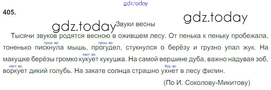 Ответы к Часть 2. Решение к упражнениям 405 Учебнику по Русскому языку для 4 класса Рамзаева Дрофа 2014