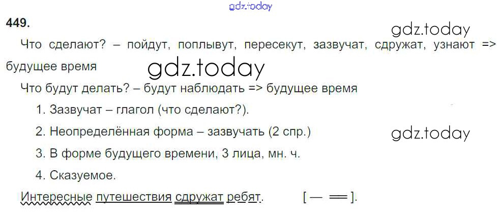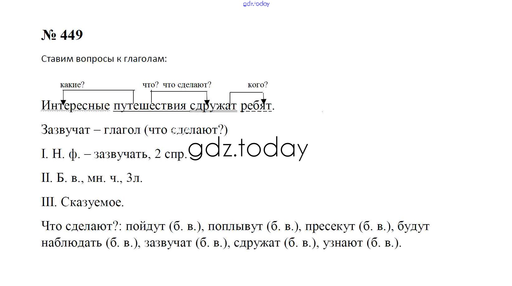 На страницах сайта gdz.today вы найдете учебный и вспомогательный материал, направленный на улучшения знаний школьной программы. ГДЗ - онлайн мир знаний Часть 2. Решение к упражнениям 449 Учебнику по Русскому языку для 4 класса Рамзаева Дрофа 2014