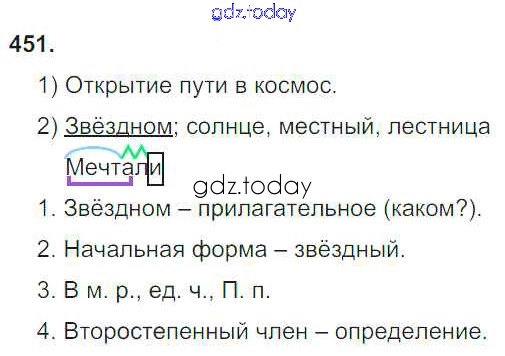 На страницах сайта gdz.today вы найдете учебный и вспомогательный материал, направленный на улучшения знаний школьной программы. ГДЗ - онлайн мир знаний Часть 2. Решение к упражнениям 451 Учебнику по Русскому языку для 4 класса Рамзаева Дрофа 2014