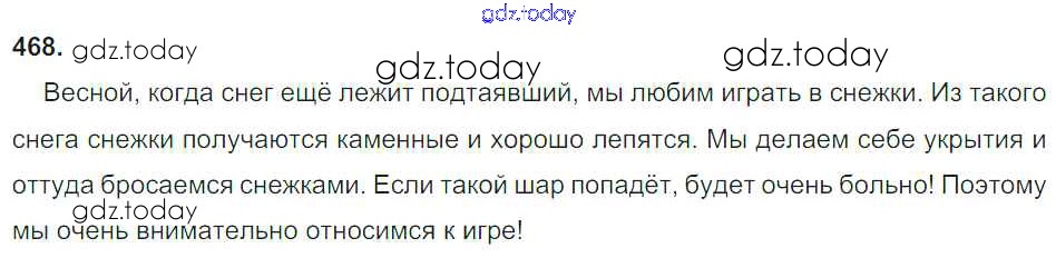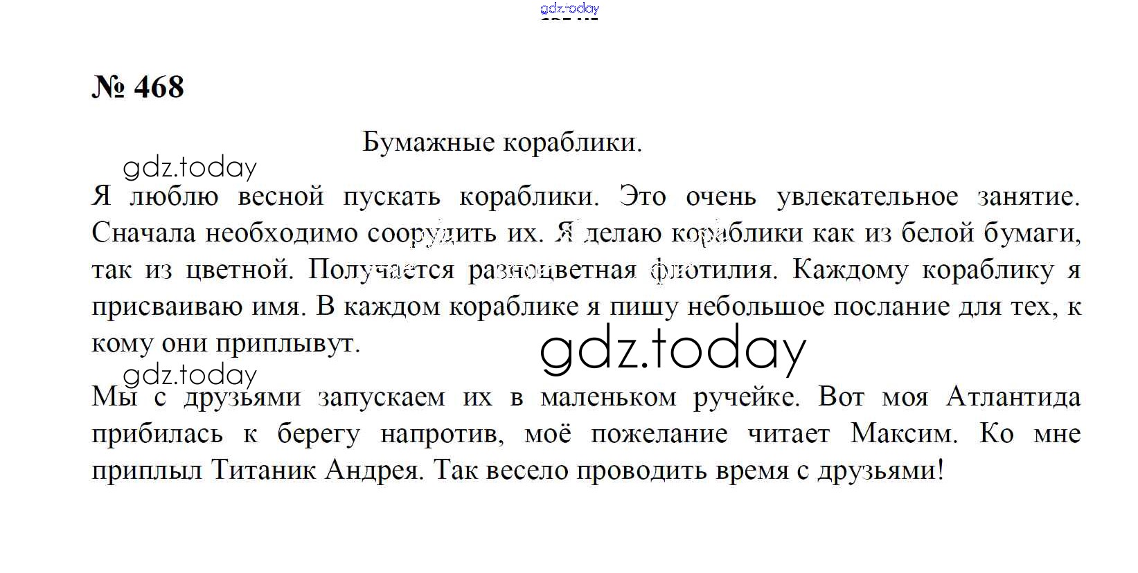Ответы к Часть 2. Решение к упражнениям 468 Учебнику по Русскому языку для 4 класса Рамзаева Дрофа 2014