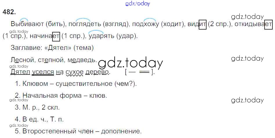 На страницах сайта gdz.today вы найдете учебный и вспомогательный материал, направленный на улучшения знаний школьной программы. ГДЗ - онлайн мир знаний Часть 2. Решение к упражнениям 482 Учебнику по Русскому языку для 4 класса Рамзаева Дрофа 2014