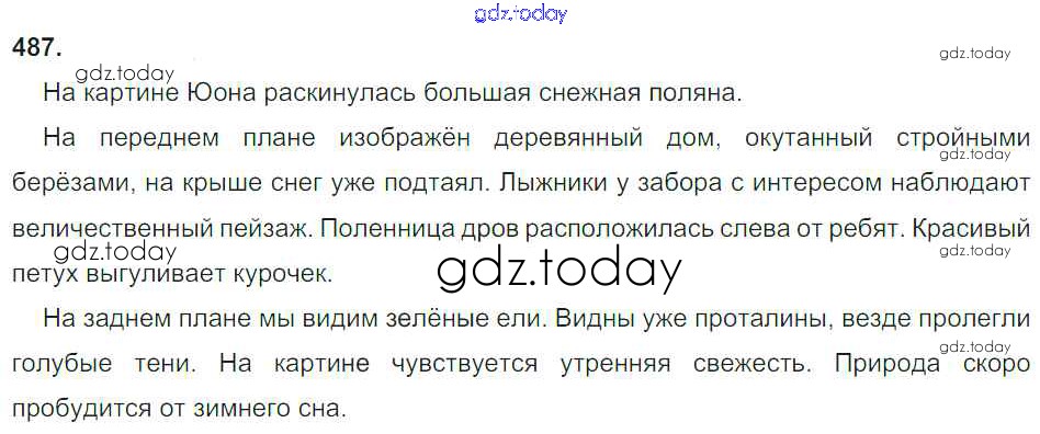 Ответы к Часть 2. Решение к упражнениям 487 Учебнику по Русскому языку для 4 класса Рамзаева Дрофа 2014