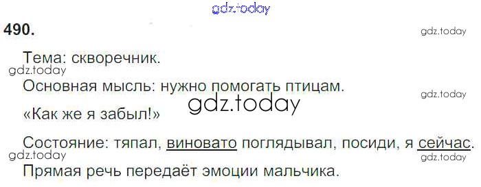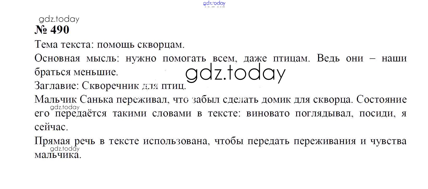 Ответы к Часть 2. Решение к упражнениям 490 Учебнику по Русскому языку для 4 класса Рамзаева Дрофа 2014