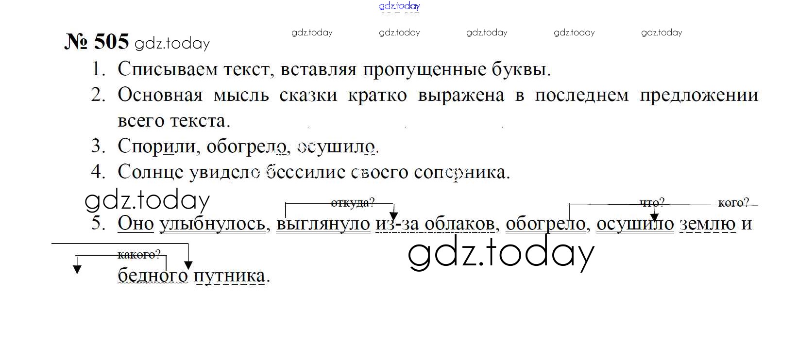 На страницах сайта gdz.today вы найдете учебный и вспомогательный материал, направленный на улучшения знаний школьной программы. ГДЗ - онлайн мир знаний Часть 2. Решение к упражнениям 505 Учебнику по Русскому языку для 4 класса Рамзаева Дрофа 2014