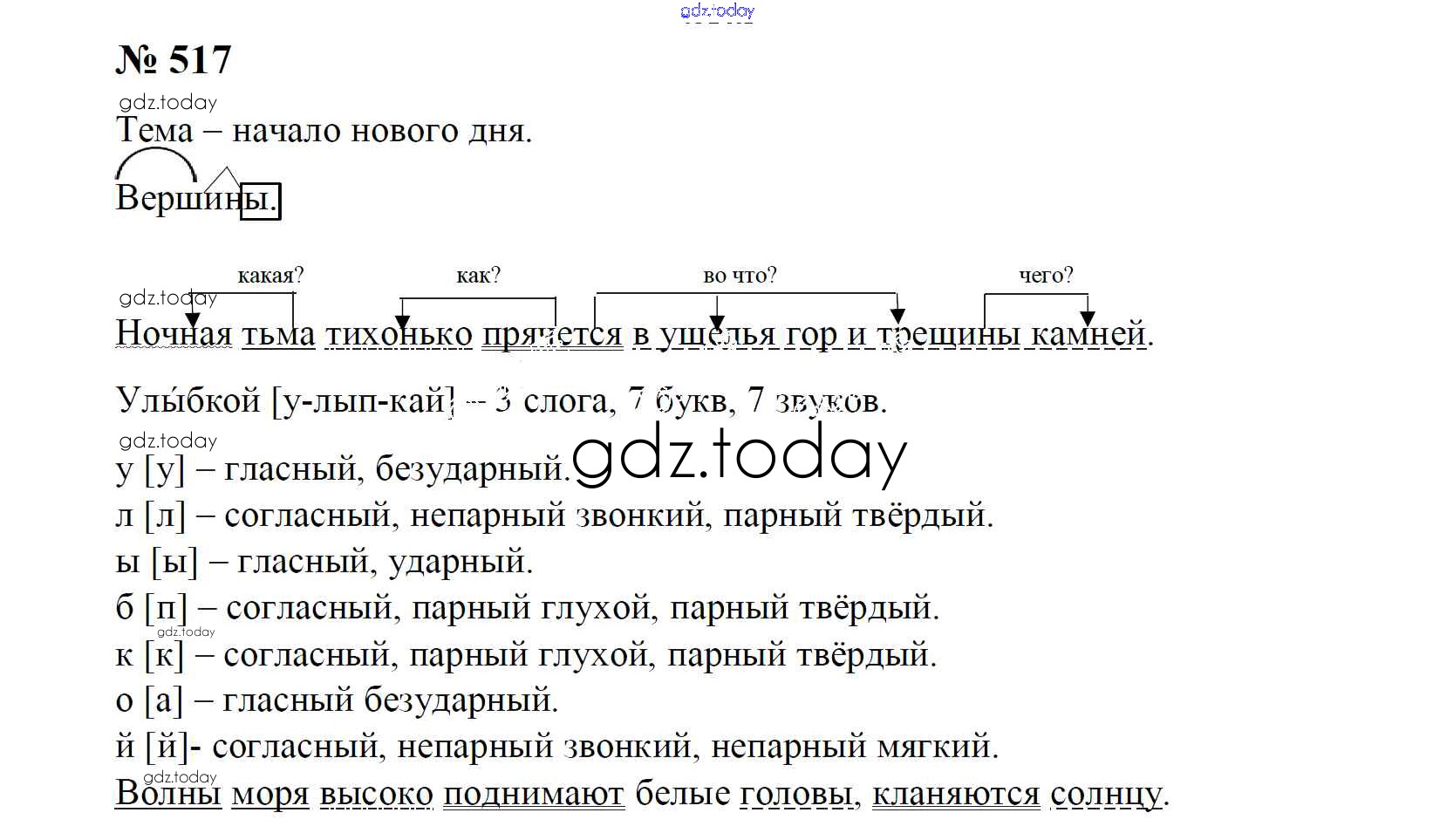 На страницах сайта gdz.today вы найдете учебный и вспомогательный материал, направленный на улучшения знаний школьной программы. ГДЗ - онлайн мир знаний Часть 2. Решение к упражнениям 517 Учебнику по Русскому языку для 4 класса Рамзаева Дрофа 2014