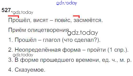 Ответы к Часть 2. Решение к упражнениям 527 Учебнику по Русскому языку для 4 класса Рамзаева Дрофа 2014