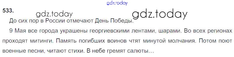 На страницах сайта gdz.today вы найдете учебный и вспомогательный материал, направленный на улучшения знаний школьной программы. ГДЗ - онлайн мир знаний Часть 2. Решение к упражнениям 533 Учебнику по Русскому языку для 4 класса Рамзаева Дрофа 2014