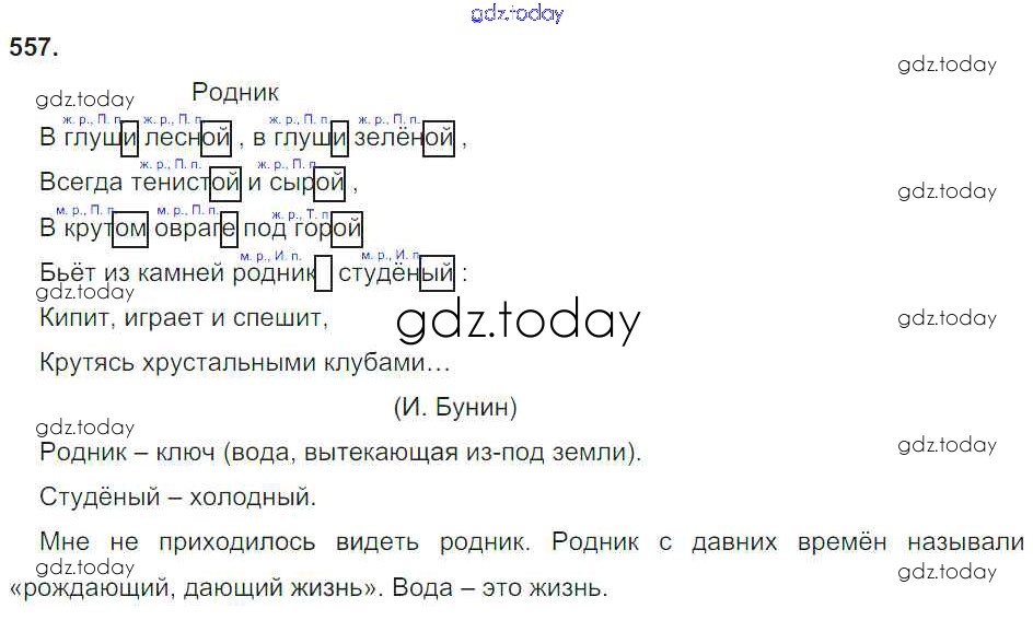 Ответы к Часть 2. Решение к упражнениям 557 Учебнику по Русскому языку для 4 класса Рамзаева Дрофа 2014