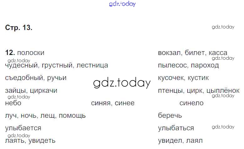 На страницах сайта gdz.today вы найдете учебный и вспомогательный материал, направленный на улучшения знаний школьной программы. ГДЗ - онлайн мир знаний Решение к части 1. Страницы 13 Рабочей тетради по Русскому языку для 4 класса Соловейчик, Кузьменко Ассоциация 21 век Гармония 2012