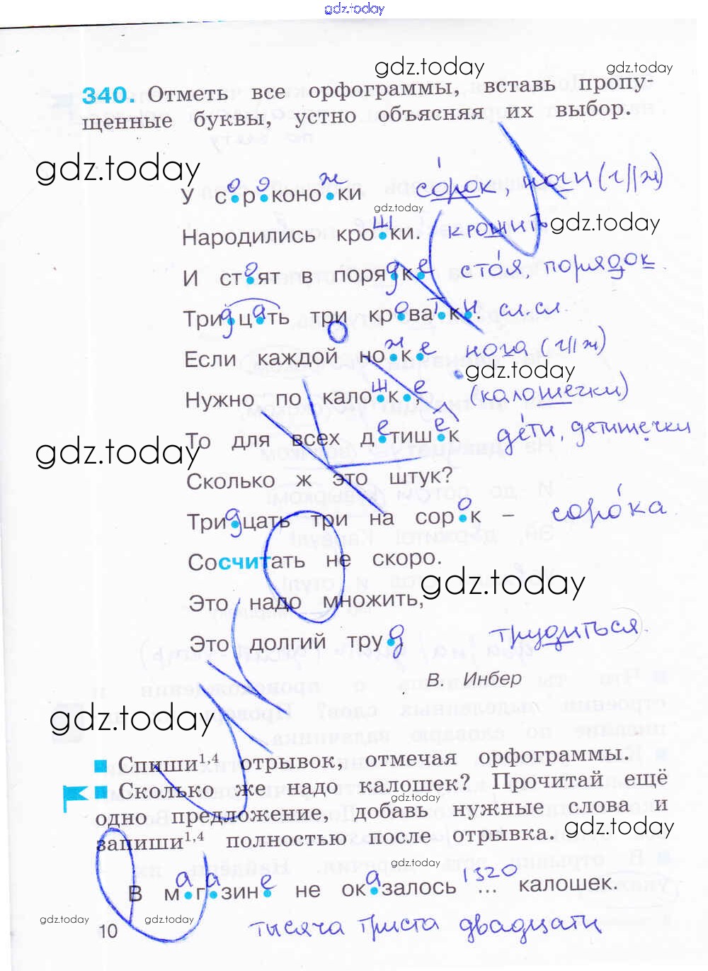 Ответы к Решение к части 2. Страницы 10 Рабочей тетради по Русскому языку для 4 класса Соловейчик, Кузьменко Ассоциация 21 век Гармония 2012