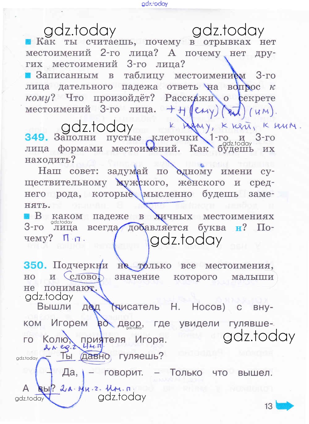 На страницах сайта gdz.today вы найдете учебный и вспомогательный материал, направленный на улучшения знаний школьной программы. ГДЗ - онлайн мир знаний Решение к части 2. Страницы 13 Рабочей тетради по Русскому языку для 4 класса Соловейчик, Кузьменко Ассоциация 21 век Гармония 2012