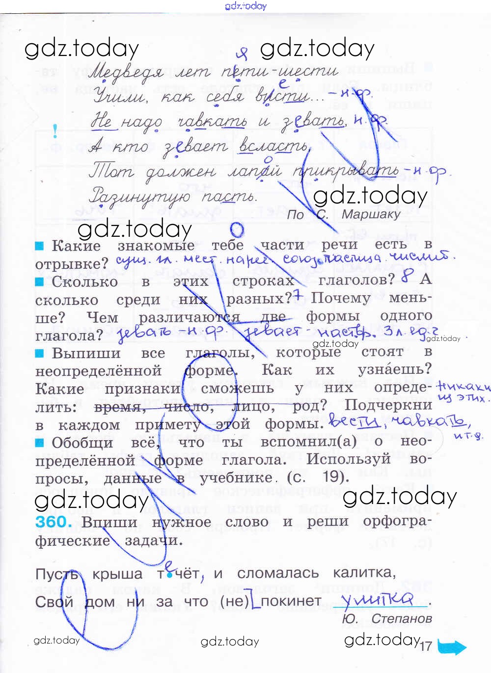 На страницах сайта gdz.today вы найдете учебный и вспомогательный материал, направленный на улучшения знаний школьной программы. ГДЗ - онлайн мир знаний Решение к части 2. Страницы 17 Рабочей тетради по Русскому языку для 4 класса Соловейчик, Кузьменко Ассоциация 21 век Гармония 2012