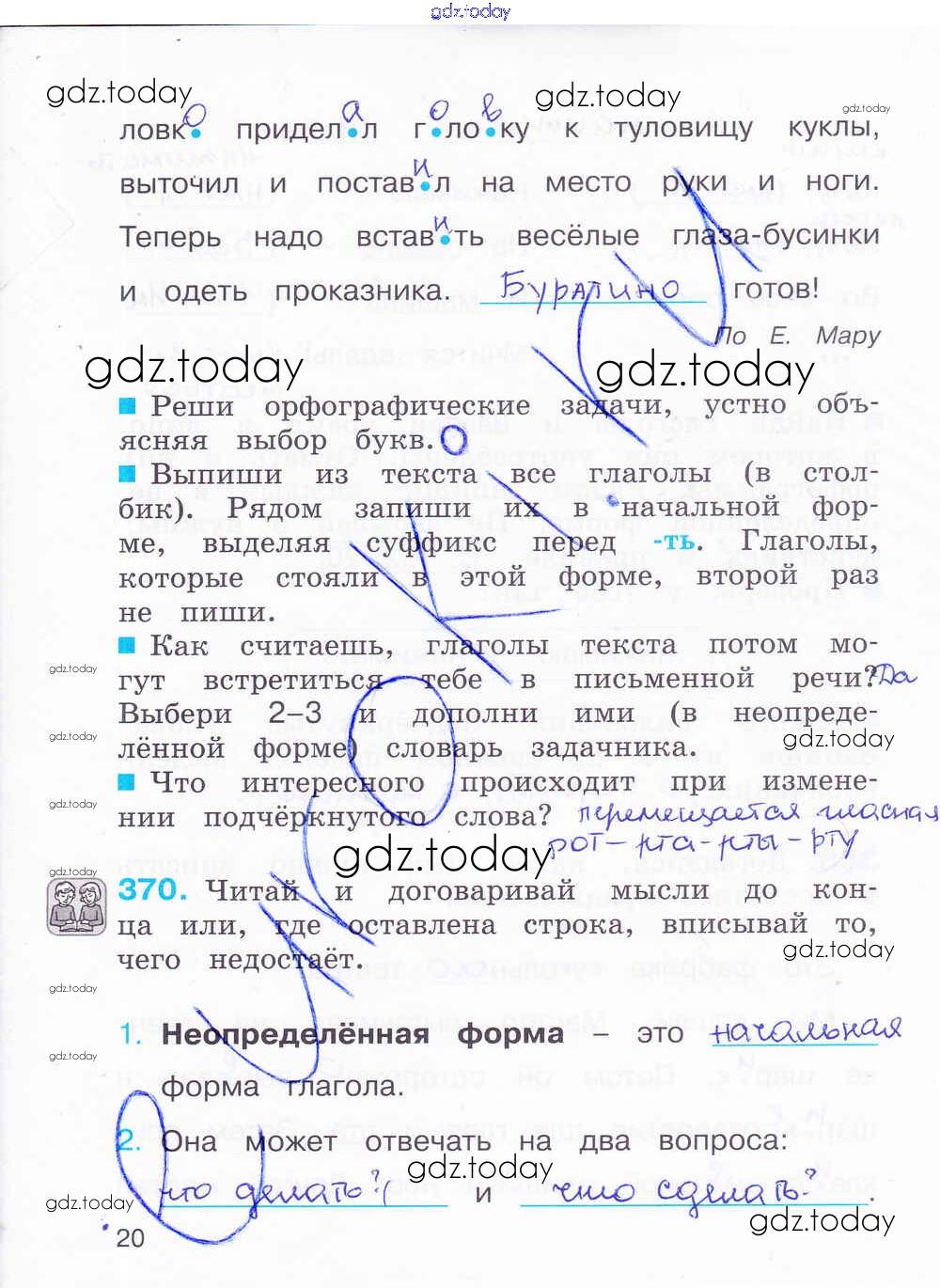 На страницах сайта gdz.today вы найдете учебный и вспомогательный материал, направленный на улучшения знаний школьной программы. ГДЗ - онлайн мир знаний Решение к части 2. Страницы 20 Рабочей тетради по Русскому языку для 4 класса Соловейчик, Кузьменко Ассоциация 21 век Гармония 2012