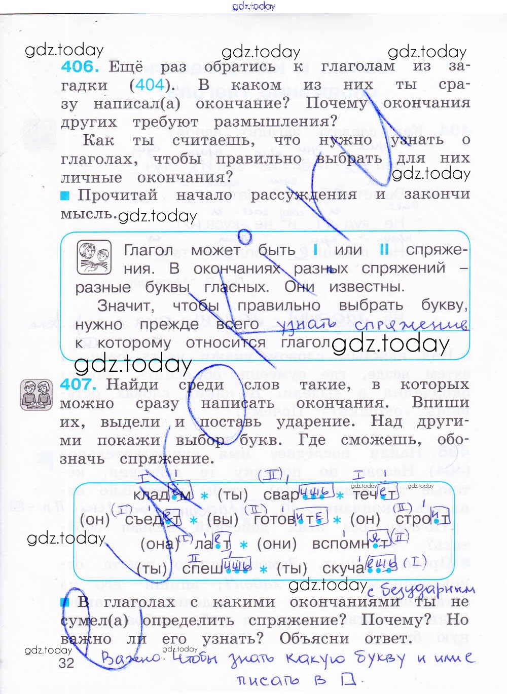 На страницах сайта gdz.today вы найдете учебный и вспомогательный материал, направленный на улучшения знаний школьной программы. ГДЗ - онлайн мир знаний Решение к части 2. Страницы 32 Рабочей тетради по Русскому языку для 4 класса Соловейчик, Кузьменко Ассоциация 21 век Гармония 2012