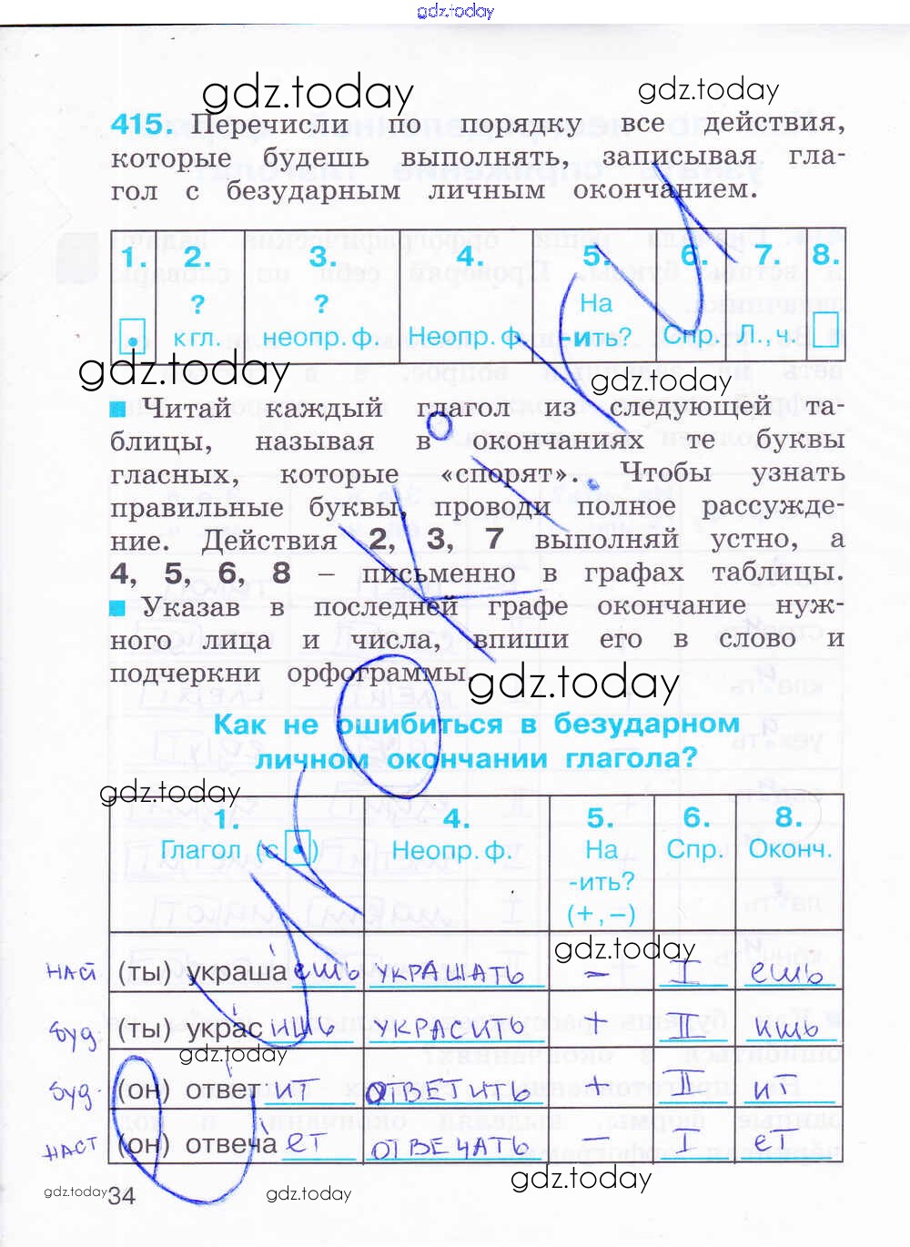 На страницах сайта gdz.today вы найдете учебный и вспомогательный материал, направленный на улучшения знаний школьной программы. ГДЗ - онлайн мир знаний Решение к части 2. Страницы 34 Рабочей тетради по Русскому языку для 4 класса Соловейчик, Кузьменко Ассоциация 21 век Гармония 2012