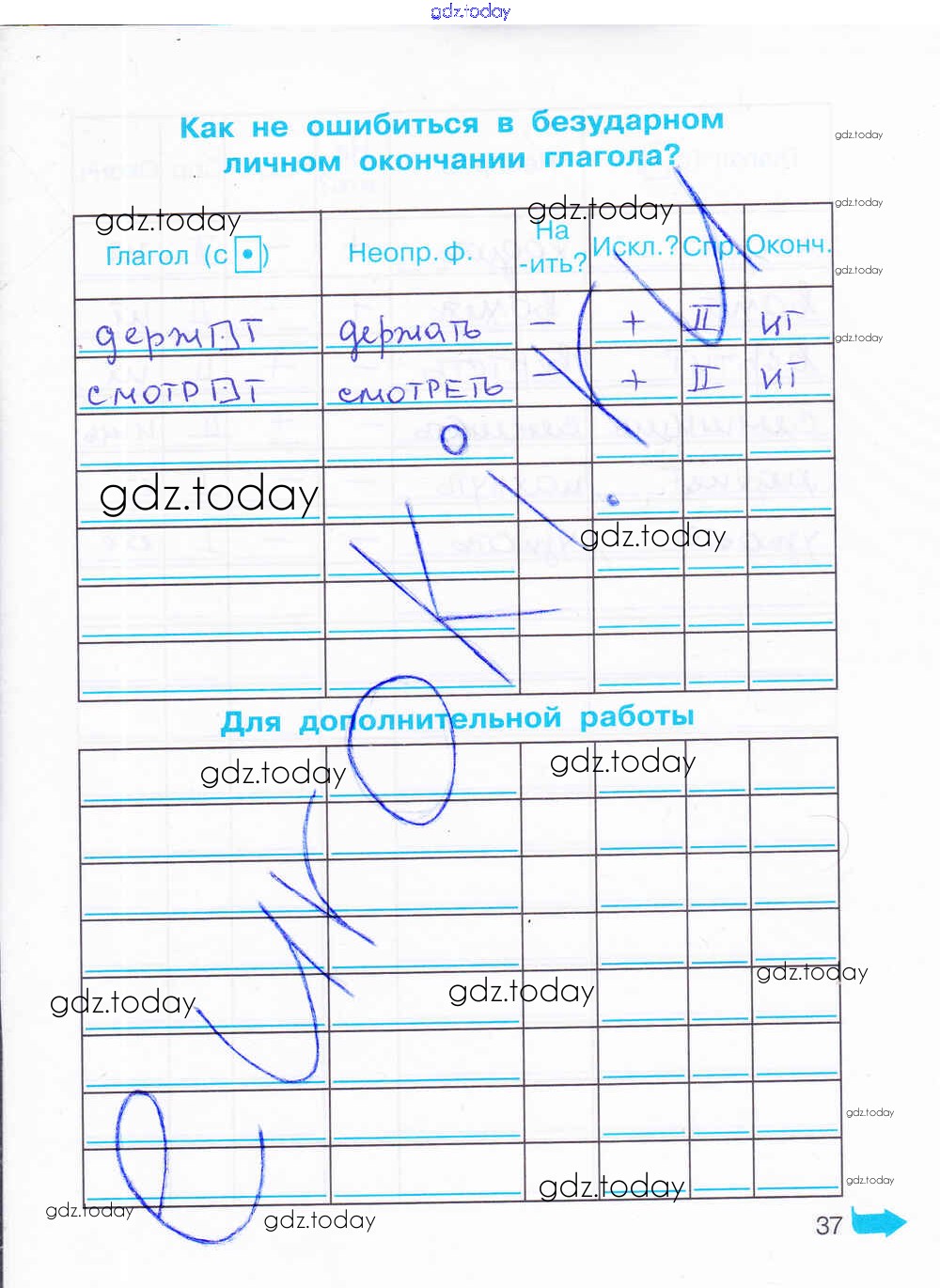 На страницах сайта gdz.today вы найдете учебный и вспомогательный материал, направленный на улучшения знаний школьной программы. ГДЗ - онлайн мир знаний Решение к части 2. Страницы 37 Рабочей тетради по Русскому языку для 4 класса Соловейчик, Кузьменко Ассоциация 21 век Гармония 2012