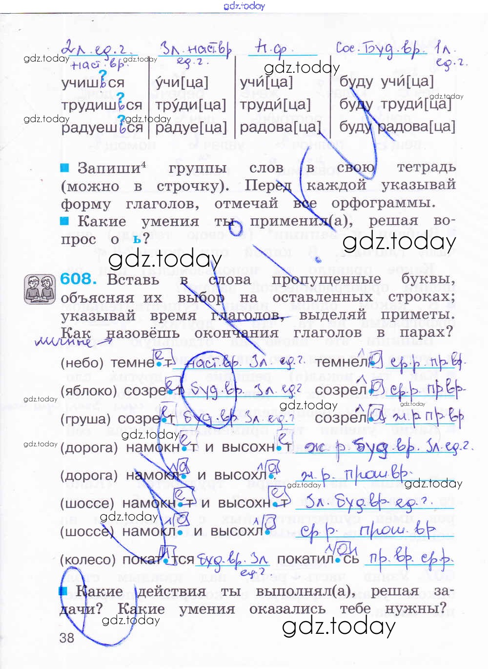 На страницах сайта gdz.today вы найдете учебный и вспомогательный материал, направленный на улучшения знаний школьной программы. ГДЗ - онлайн мир знаний Решение к части 2. Страницы 38 Рабочей тетради по Русскому языку для 4 класса Соловейчик, Кузьменко Ассоциация 21 век Гармония 2012