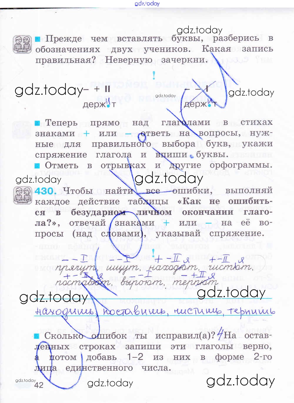 На страницах сайта gdz.today вы найдете учебный и вспомогательный материал, направленный на улучшения знаний школьной программы. ГДЗ - онлайн мир знаний Решение к части 2. Страницы 42 Рабочей тетради по Русскому языку для 4 класса Соловейчик, Кузьменко Ассоциация 21 век Гармония 2012