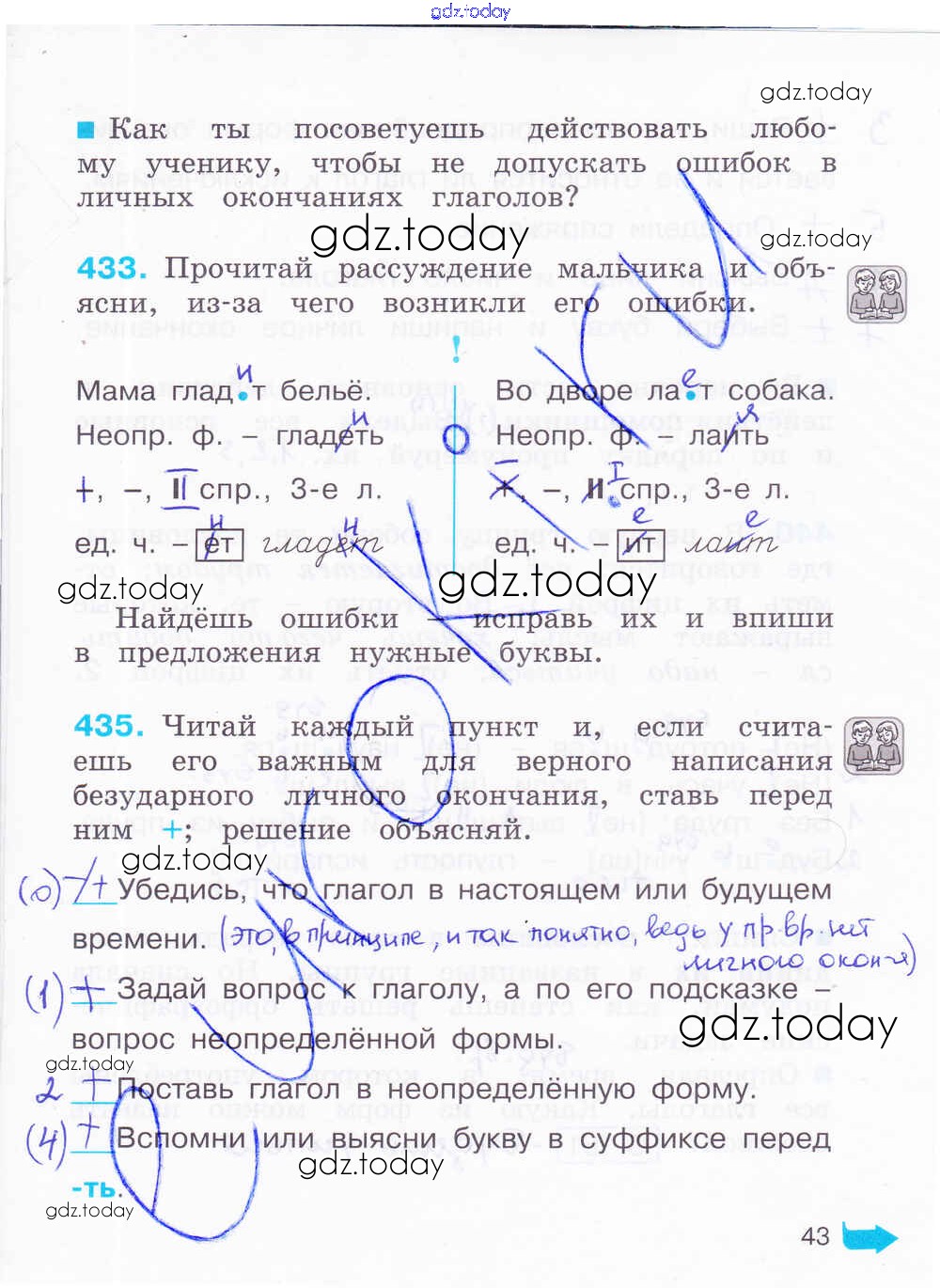 На страницах сайта gdz.today вы найдете учебный и вспомогательный материал, направленный на улучшения знаний школьной программы. ГДЗ - онлайн мир знаний Решение к части 2. Страницы 43 Рабочей тетради по Русскому языку для 4 класса Соловейчик, Кузьменко Ассоциация 21 век Гармония 2012