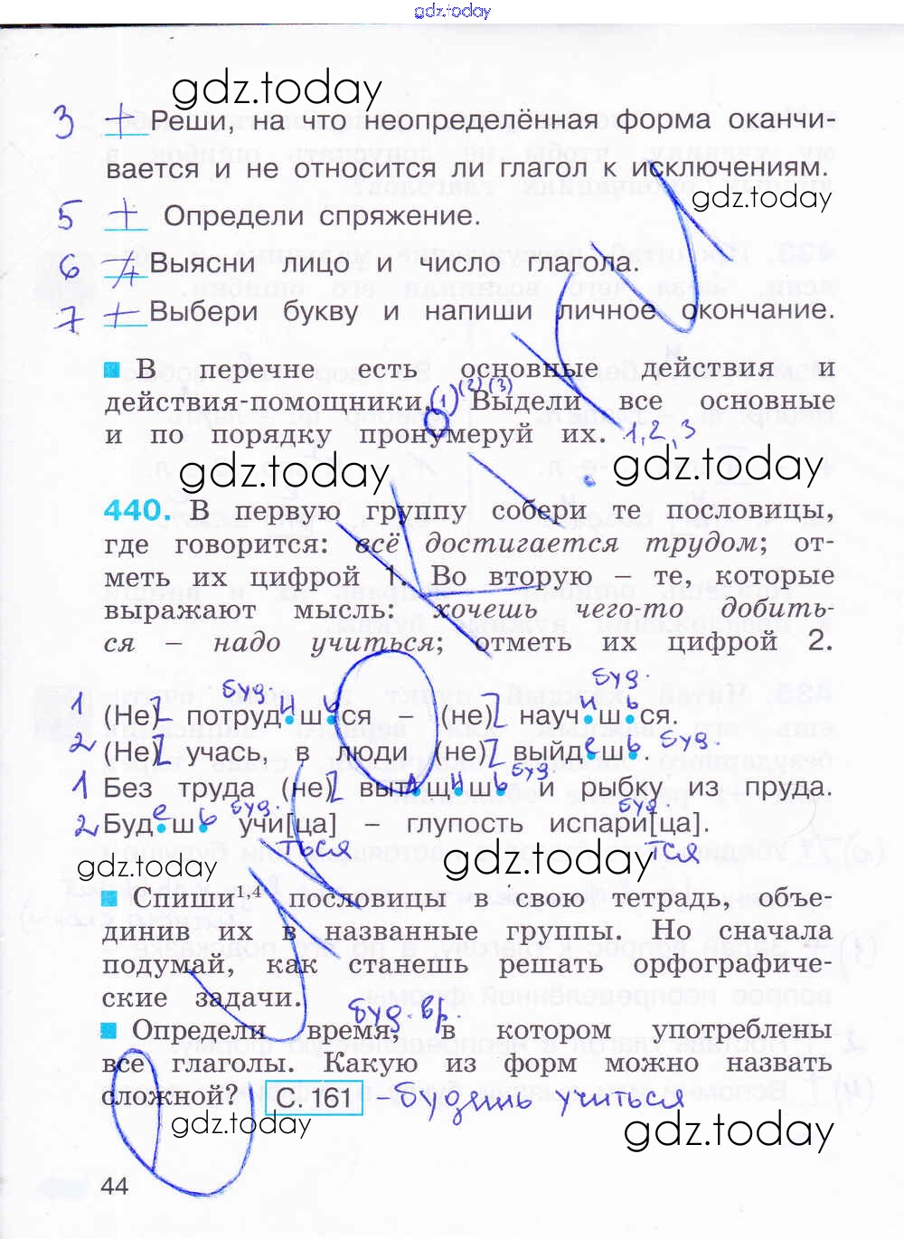 На страницах сайта gdz.today вы найдете учебный и вспомогательный материал, направленный на улучшения знаний школьной программы. ГДЗ - онлайн мир знаний Решение к части 2. Страницы 44 Рабочей тетради по Русскому языку для 4 класса Соловейчик, Кузьменко Ассоциация 21 век Гармония 2012