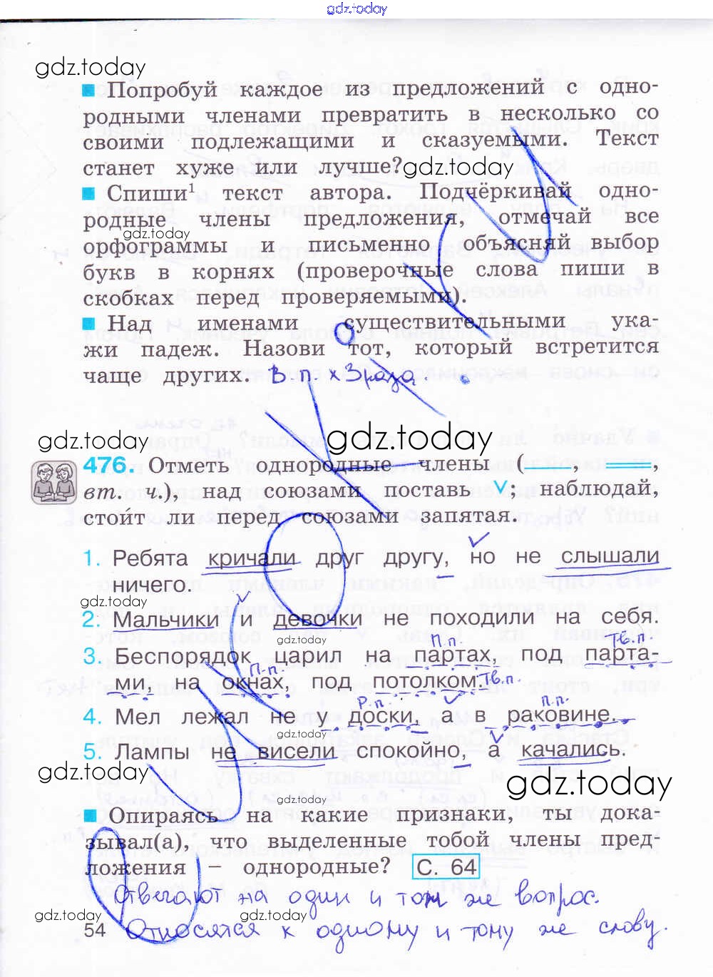 На страницах сайта gdz.today вы найдете учебный и вспомогательный материал, направленный на улучшения знаний школьной программы. ГДЗ - онлайн мир знаний Решение к части 2. Страницы 54 Рабочей тетради по Русскому языку для 4 класса Соловейчик, Кузьменко Ассоциация 21 век Гармония 2012