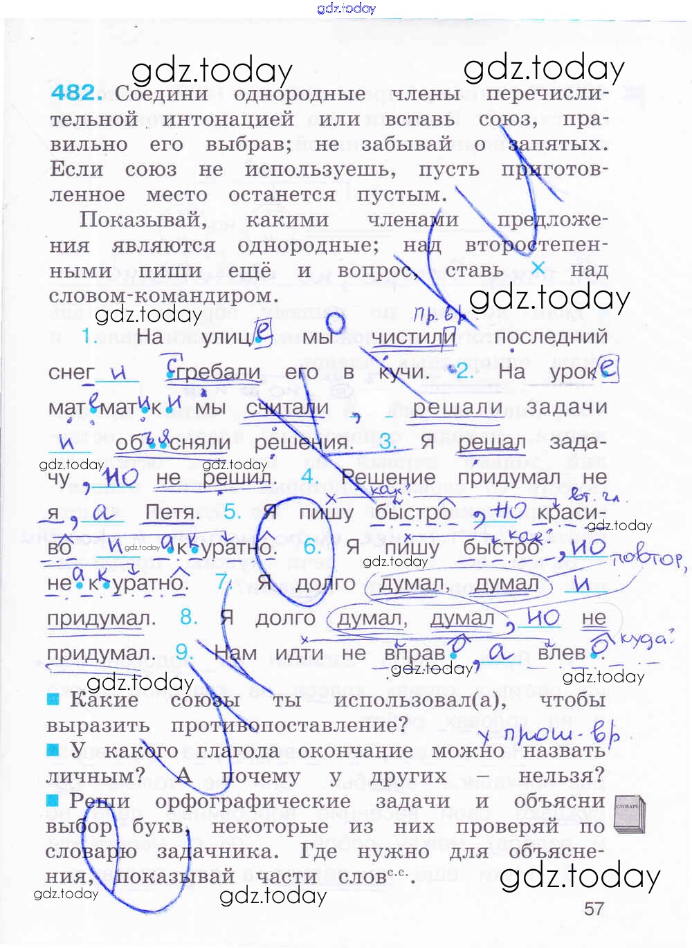 На страницах сайта gdz.today вы найдете учебный и вспомогательный материал, направленный на улучшения знаний школьной программы. ГДЗ - онлайн мир знаний Решение к части 2. Страницы 57 Рабочей тетради по Русскому языку для 4 класса Соловейчик, Кузьменко Ассоциация 21 век Гармония 2012