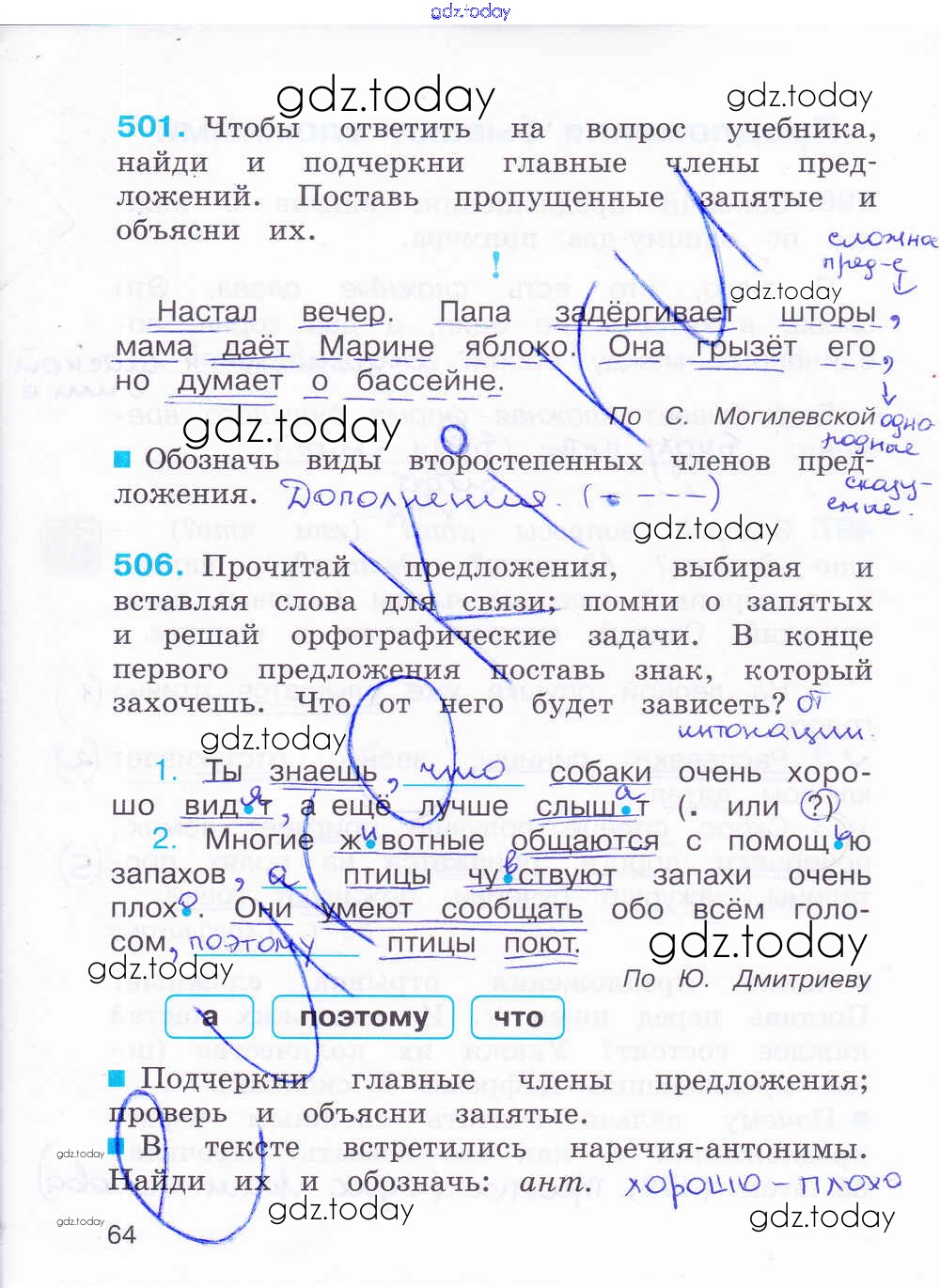 На страницах сайта gdz.today вы найдете учебный и вспомогательный материал, направленный на улучшения знаний школьной программы. ГДЗ - онлайн мир знаний Решение к части 2. Страницы 64 Рабочей тетради по Русскому языку для 4 класса Соловейчик, Кузьменко Ассоциация 21 век Гармония 2012