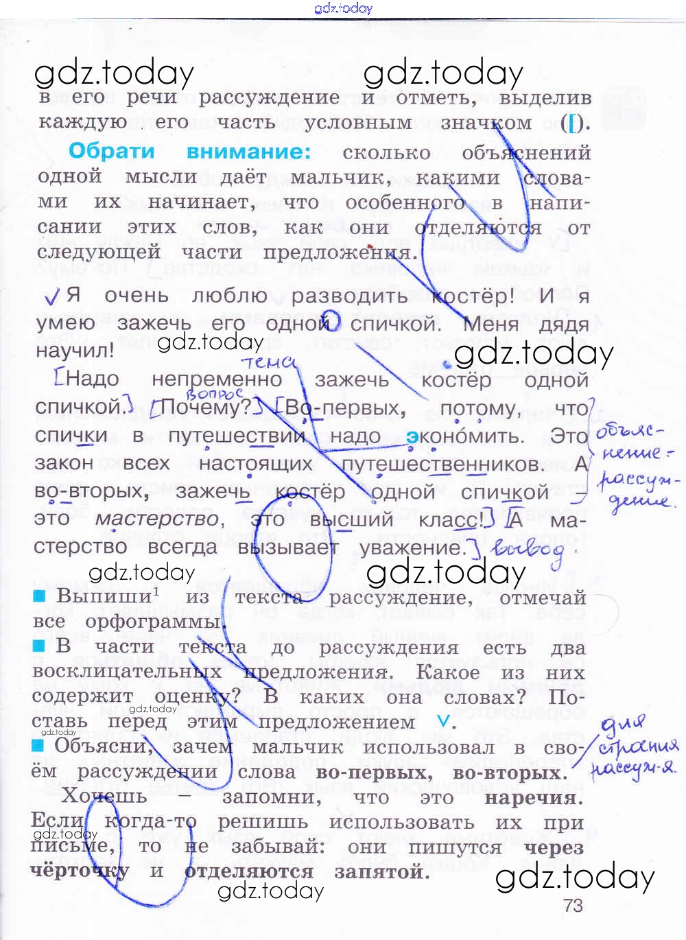 На страницах сайта gdz.today вы найдете учебный и вспомогательный материал, направленный на улучшения знаний школьной программы. ГДЗ - онлайн мир знаний Решение к части 2. Страницы 73 Рабочей тетради по Русскому языку для 4 класса Соловейчик, Кузьменко Ассоциация 21 век Гармония 2012