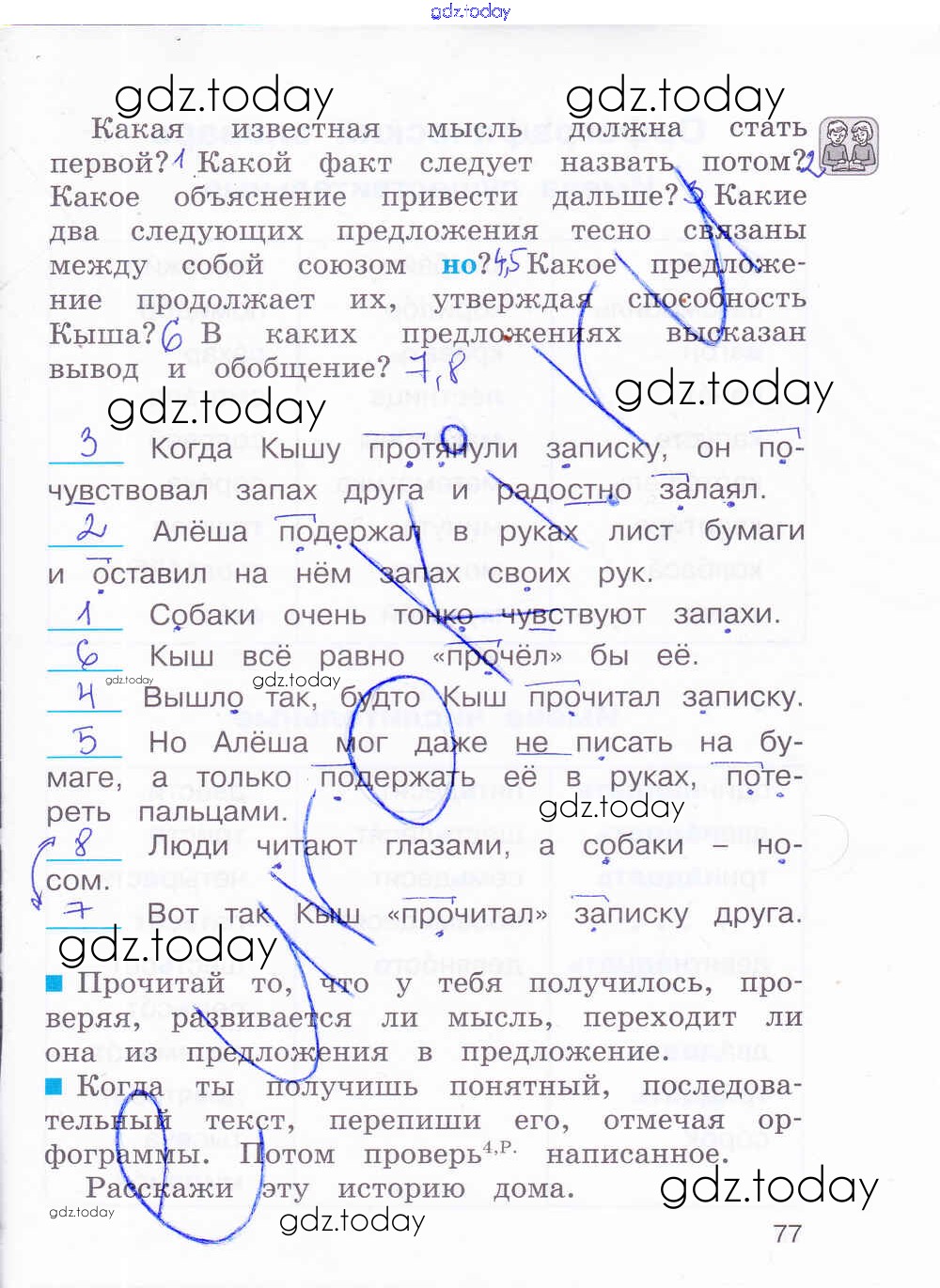 На страницах сайта gdz.today вы найдете учебный и вспомогательный материал, направленный на улучшения знаний школьной программы. ГДЗ - онлайн мир знаний Решение к части 2. Страницы 77 Рабочей тетради по Русскому языку для 4 класса Соловейчик, Кузьменко Ассоциация 21 век Гармония 2012
