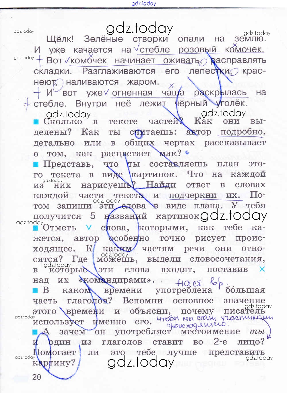 На страницах сайта gdz.today вы найдете учебный и вспомогательный материал, направленный на улучшения знаний школьной программы. ГДЗ - онлайн мир знаний Решение к части 3. Страницы 20 Рабочей тетради по Русскому языку для 4 класса Соловейчик, Кузьменко Ассоциация 21 век Гармония 2012