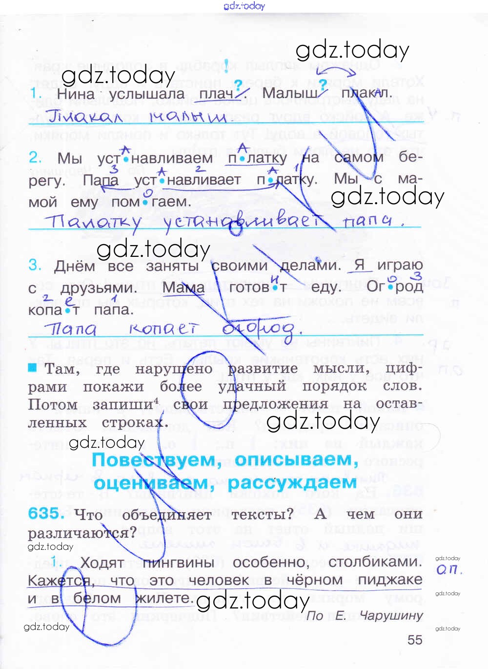 На страницах сайта gdz.today вы найдете учебный и вспомогательный материал, направленный на улучшения знаний школьной программы. ГДЗ - онлайн мир знаний Решение к части 3. Страницы 55 Рабочей тетради по Русскому языку для 4 класса Соловейчик, Кузьменко Ассоциация 21 век Гармония 2012