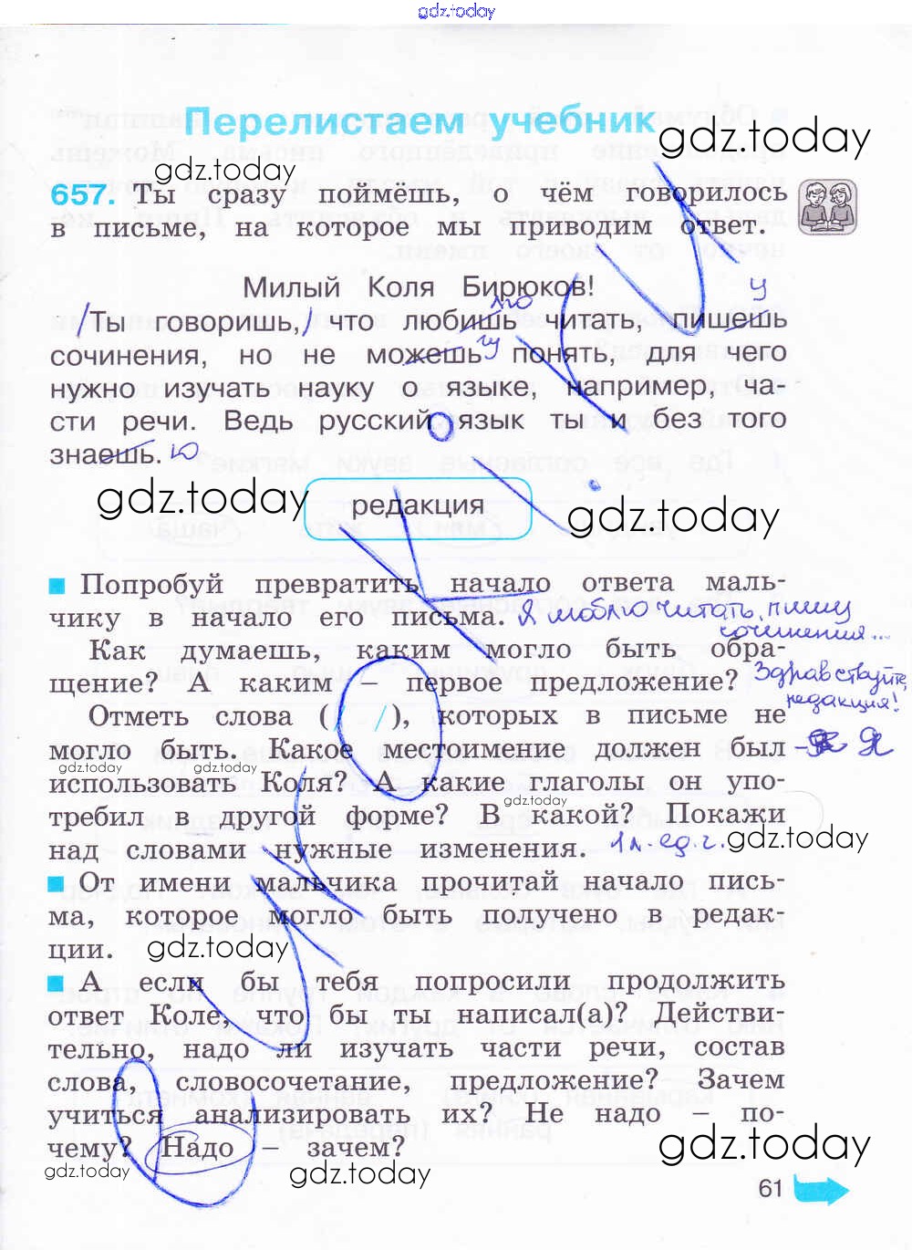 На страницах сайта gdz.today вы найдете учебный и вспомогательный материал, направленный на улучшения знаний школьной программы. ГДЗ - онлайн мир знаний Решение к части 3. Страницы 61 Рабочей тетради по Русскому языку для 4 класса Соловейчик, Кузьменко Ассоциация 21 век Гармония 2012
