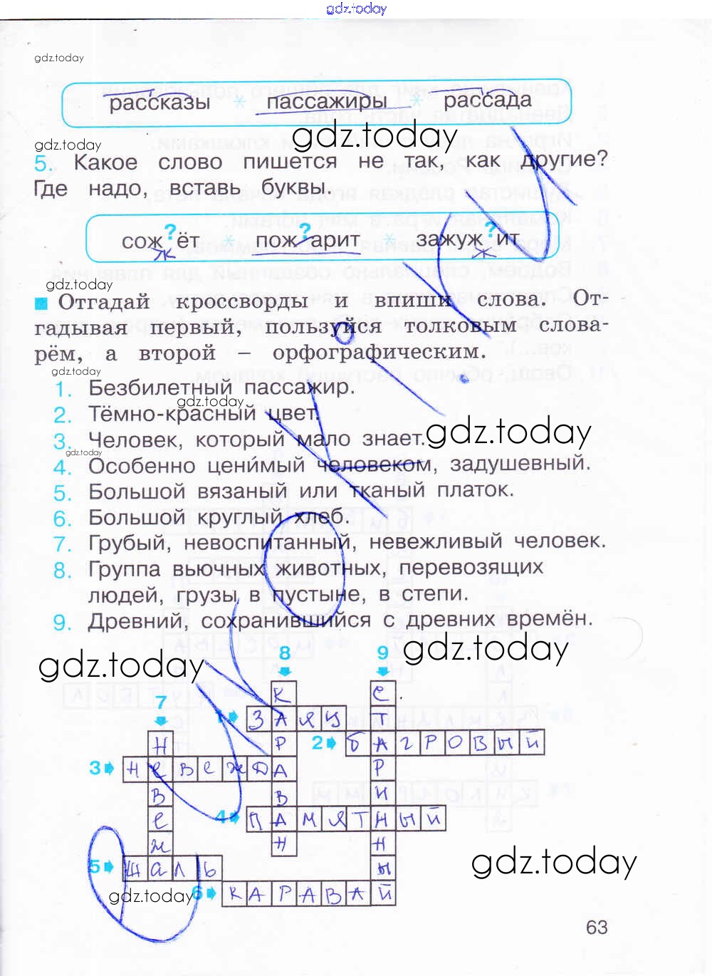 На страницах сайта gdz.today вы найдете учебный и вспомогательный материал, направленный на улучшения знаний школьной программы. ГДЗ - онлайн мир знаний Решение к части 3. Страницы 63 Рабочей тетради по Русскому языку для 4 класса Соловейчик, Кузьменко Ассоциация 21 век Гармония 2012