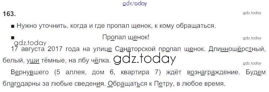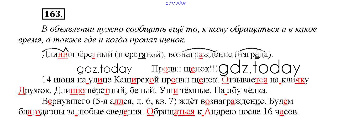 На страницах сайта gdz.today вы найдете учебный и вспомогательный материал, направленный на улучшения знаний школьной программы. ГДЗ - онлайн мир знаний Решение к части 1. Упражнения 163 Учебнику по Русскому языку для 4 класса Соловейчик, Кузьменко Ассоциация 21 век Гармония 2015