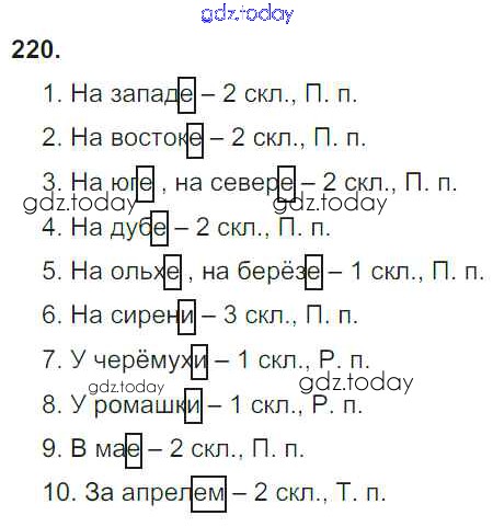 На страницах сайта gdz.today вы найдете учебный и вспомогательный материал, направленный на улучшения знаний школьной программы. ГДЗ - онлайн мир знаний Решение к части 1. Упражнения 220 Учебнику по Русскому языку для 4 класса Соловейчик, Кузьменко Ассоциация 21 век Гармония 2015